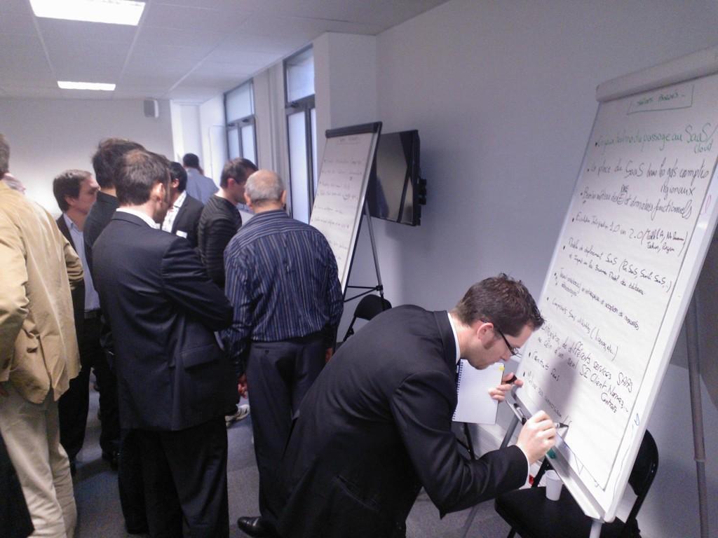 Les Participants s'exprimèrent sur les sujets qu'ils voulaient aborder lors de ce SaasCamp. Vous noterez que, même si nous sommes en train de parler d'Internet, la civilisation du papier a encore son utilité.