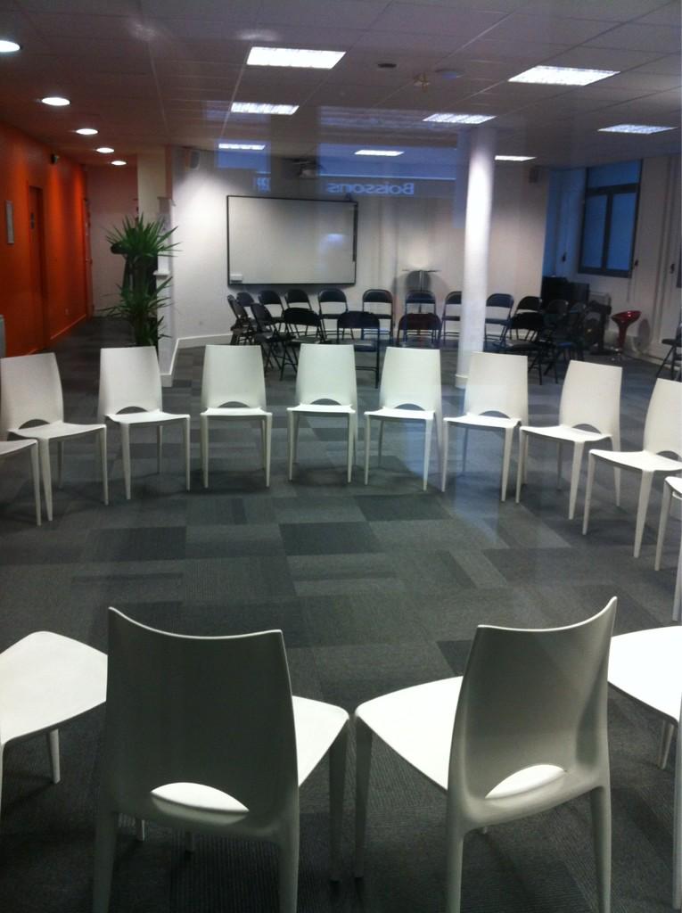 Dès l'aube, comme par sorcellerie, les salles étaient tout spécialement préparées pour accueillir les BarCamps ; les chaises étaient rangées à l'instar de ronds de sorcières dans un pré.
